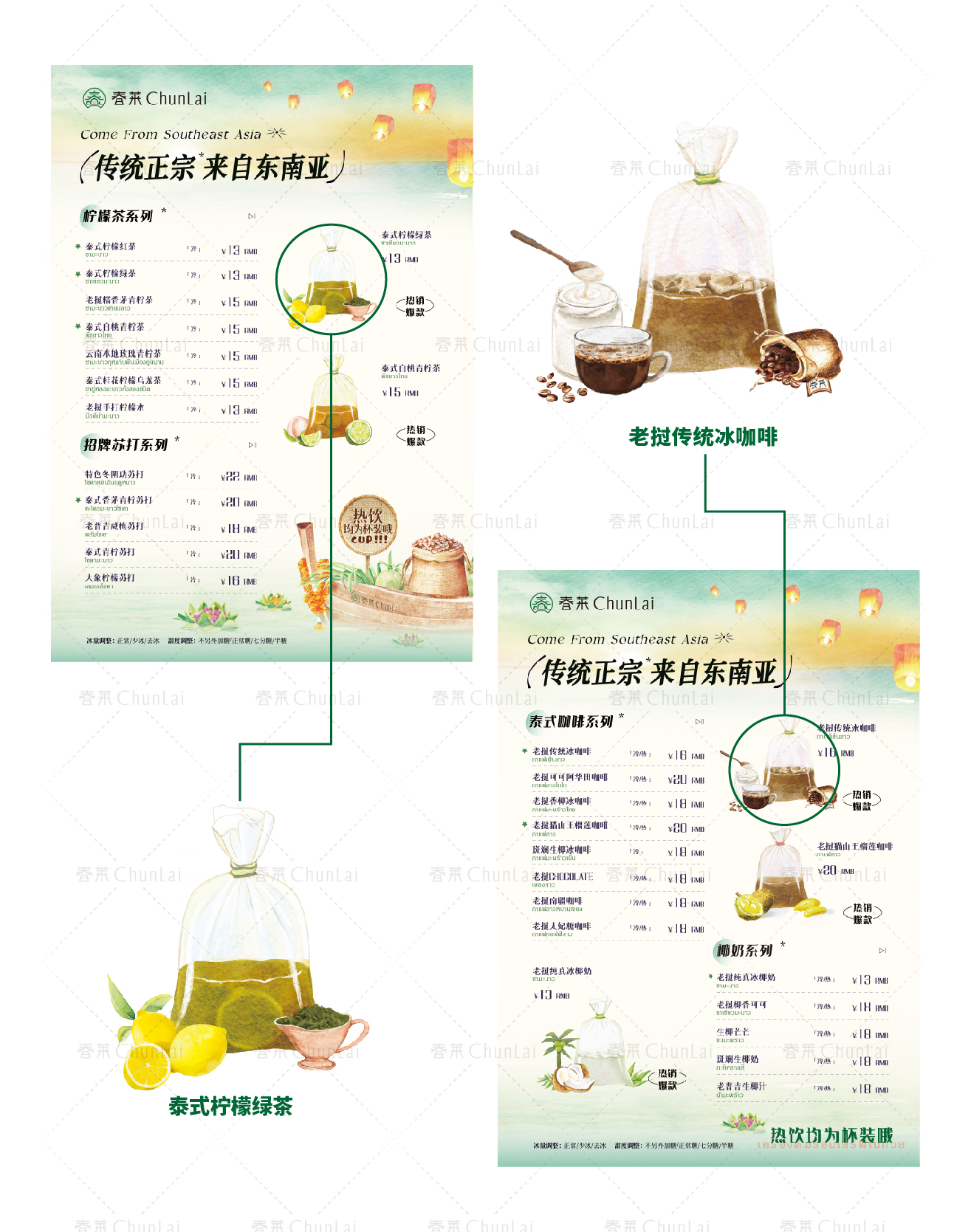 传统柠檬茶/生椰/泰式奶茶/老挝咖啡/太妃/豆乳/泰式甜品等多种系列产品。